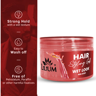 Lilium Hair Styling Gel 250ml | Non-Sticky, Strong Hold for All Hair Types | Stylish Glossy Finish Hair Volumizer | Long-Lasting, Flexible Styling Gel for Men