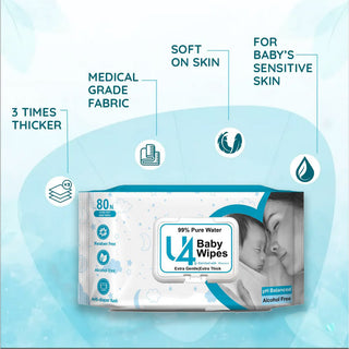 Adbeni Imported Soft Cleansing Baby Wipes with Lid 80 Wipes | Extra Thick & Moist Wet Wipes for Babies | Prevents Rashes & Redness with Aloe Vera | Gentle & Safe for Baby Skin