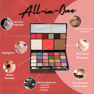 Adbeni Imported Makeup Kit 55g | 24 Eyeshadow Shades, 3 Lipsticks, 3 Eyebrow Colors, 1 Blusher, Highlighter & Contour | All-in-One Professional Beauty Set for Women & Girls