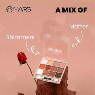 MARS 12 Shades Back to Basics Eyeshadow Palette with Free Applicator | Matte | Shimmer | Beginner Friendly & Long Lasting Eye Shadow Palette (14.4 gm) (Item code: 449)
